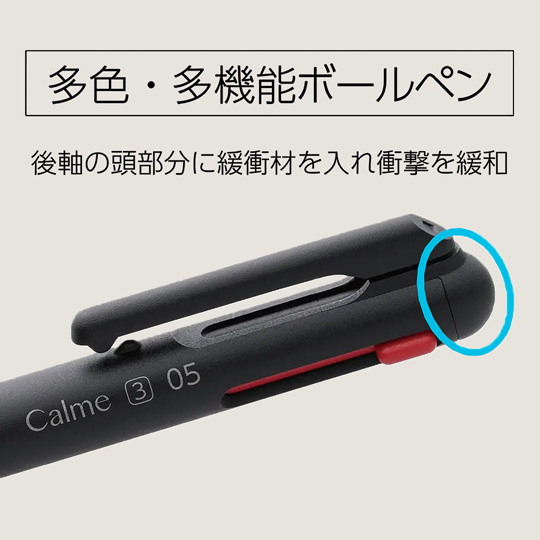 ボールペン特有の「カチカチ」というノック音。多くの人が気になっていたその音を大幅に低減をしたのが静音ノック式ボールペン「カルムボールペン」になります。セミナー、会議、図書館などの静寂な環境の中で今まで気づかいながら使っていた人はもちろん、周りの人にも迷惑を掛けない心配りのできるボールペン。ノック時の操作音を従来品と比べておおよそ66%低減致しました。(ぺんてる比 音圧パスカルで比較)