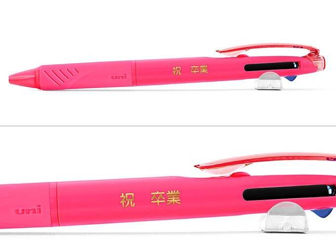 国産ボールペン人気ナンバーワン!くせになるなめらかな書き味でおなじみのジェットストリームシリーズ。日本が誇る三菱UNIの国産ボールペンです。世界初の画期的な新開発インクを搭載し、油性でありながら水性のような書き味を実現。従来の油性ボールペンと比較して最大40%も低い筆記抵抗でなめらかな書き味を実現(三菱UNI調べ)。しかも優れた速乾性によりにじみにくいという万能タイプのインクを使用しております。また、水性ボールペンのような低粘度のインクを使用することによるインクの漏れや逆流を防ぐスプリングチップ&ツインボール機構を搭載しており、安心してご使用いただけます。インク色は黒、赤、青の3色で、それぞれにすらすら書けるインクを搭載しております。印刷方式は3種類。単色印刷・PAD印刷・フルカラー印刷の中からご希望の名入れ内容に合わせてお選びいただけます。
