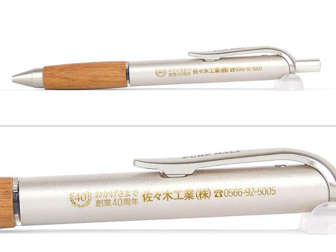 グリップ部分にウイスキー熟成後の樽材を使い、味わいのある趣の木製ペン「ピュアモルト」。木の感触がペンを握った手にやさしいぬくもりを与えてくれる心癒されるボールペンです。天然素材を使用してるため1つ1つの木目や色味が少しづつ変わる味わい深い1本。他にはない商品ですので会社の周年記念品や卒業記念のプレゼントとしても喜ばれるボールペンです。こちらの商品は、名入れ部分が樹脂で製作されているため、ボールペンへの名入れの相性もバツグンです。文字の印刷色は金色と黒が人気。大きな文字を印字できるPAD印刷にも対応しています。