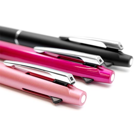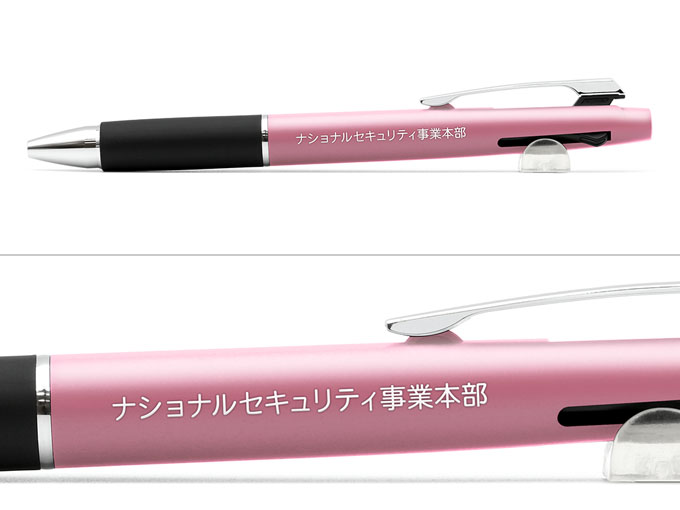 国産ボールペン人気ナンバーワン!くせになるなめらかな書き味でおなじみのジェットストリームシリーズ。日本が誇る三菱UNIの国産ボールペンです。世界初の画期的な新開発インクを搭載し、油性でありながら水性のような書き味を実現。従来の油性ボールペンと比較して最大40%も低い筆記抵抗でなめらかな書き味を実現(三菱UNI調べ)。しかも優れた速乾性によりにじみにくいという万能タイプのインクを使用しております。また、水性ボールペンのような低粘度のインクを使用することによるインクの漏れや逆流を防ぐスプリングチップ&ツインボール機構を搭載しており、安心してご使用いただけます。こちらの商品は黒・赤2色のボールぺンにシャープペンが付いた多機能ボールペンになっています。本体カラーは女性に人気の高いブラック、ピンク、ライトピンクをご用意しています。英字を印字するなら筆記体もおすすめ。より高級感のある名入れボールペンが作成できます。