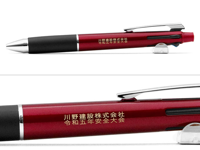 国産ボールペン人気ナンバーワン!くせになるなめらかな書き味でおなじみのジェットストリームシリーズ。日本が誇る三菱UNIの国産ボールペンです。世界初の画期的な新開発インクを搭載し、油性でありながら水性のような書き味を実現。従来の油性ボールペンと比較して最大40%も低い筆記抵抗でなめらかな書き味を実現(三菱UNI調べ)。しかも優れた速乾性によりにじみにくいという万能タイプのインクを使用しております。また、水性ボールペンのような低粘度のインクを使用することによるインクの漏れや逆流を防ぐスプリングチップ&ツインボール機構を搭載しており、安心してご使用いただけます。さらに黒・赤・青・緑の4色のボールペンにシャープペンのついた多機能なペン。本体色は10色の中からお好きな色をお選び頂けます。印刷範囲の広いPAD印刷にも対応。大きな文字や2行での名入れも可能です。