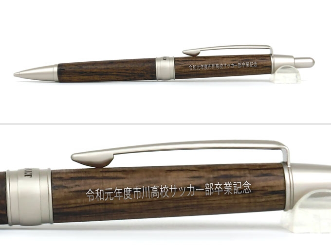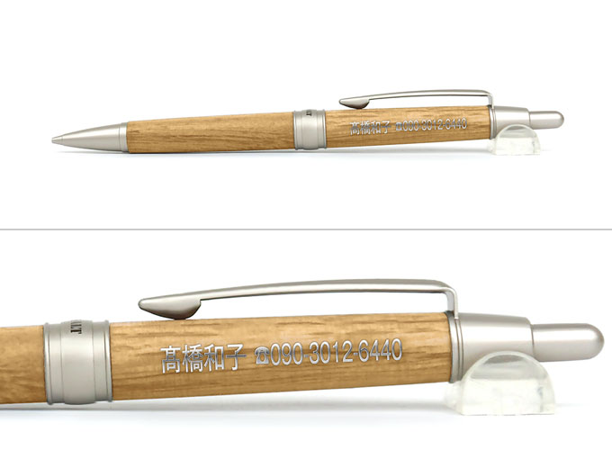 ウイスキー熟成後の樽材を再加工して作られた木製ペンのピュアモルト1000のスリムタイプが登場しました。樽に使われるオークは、美しさと強度に優れる高級素材。その特性を生かして作られるピュアモルトシリーズは、あたたかく自然な色あいと木のぬくもりを感じさせる質感が魅力の1本で、耐久性も抜群です。こちらの商品はスリムタイプで女性の手にも持ちやすく、ポケットにもスッと収まります。天然素材に由来する木目や色あいで、1つ1つ微妙に趣が異なるのもピュアモルトの特徴。高級感たっぷりのデザインで、ノベルティのほかにも記念品やビジネスギフトとして贈る名入れボールペンにぴったりです。名入れの書体は隷書体や丸ゴシック体がおすすめ。金・銀・白の印刷色が人気です。