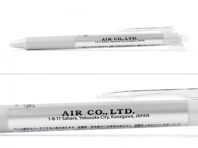 フリクションシリーズは何度も書けて何度でも消せるとても便利なボールペンです。書いた文字をペン上部に付いている専用のラバーでこすると、インクが透明になりゴミやカスも出ないのでとっても便利。仕事、学校、プライベートなど様々な場面でお使いいただける人気の商品です。ボディは、高級感のある模様なしシルバーと三角形のトライアングル模様のモダンなシルバーの2種類がございます。おすすめの名入れ色は黒、赤、青などの濃色のはっきりした色との相性が良いです。