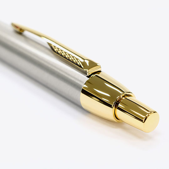 すっきりとシンプルなデザインで美しいフォルムの パーカー・IM GTボールペン。高級ボールペンの代名詞として高い人気があります。しっかりとした重みを感じる大人のボールペンで、特長のあるクリップデザインはポケットに収めた時にさりげないオシャレを演出してくれます。本体は落ち着きのあるシルバーになっておりペン先・ノック部分に金色を施した高級感のある1本になっています。ブランド品のボールペンの中では比較的低価格で手に入るので、高級ボールペンでノベルティを作成したい方や、記念品・ギフトの作成を考えている方にオススメです。