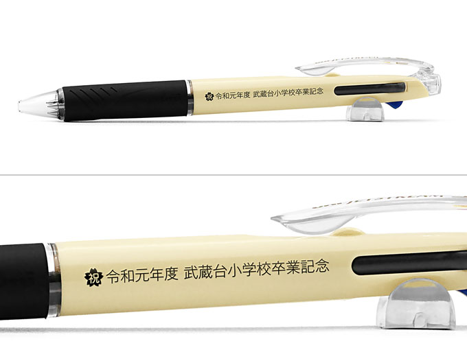 国産ボールペン人気ナンバーワン!くせになるなめらかな書き味でおなじみのジェットストリームシリーズ。日本が誇る三菱UNIの国産ボールペンです。世界初の画期的な新開発インクを搭載し、油性でありながら水性のような書き味を実現。従来の油性ボールペンと比較して最大40%も低い筆記抵抗でなめらかな書き味を実現(三菱UNI調べ)。しかも優れた速乾性によりにじみにくいという万能タイプのインクを使用しております。また、水性ボールペンのような低粘度のインクを使用することによるインクの漏れや逆流を防ぐスプリングチップ&ツインボール機構を搭載しており、安心してご使用いただけます。インク色は黒、赤、青の3色で、それぞれにすらすら書けるインクを搭載しております。人気の高さと高い実用性でノベルティ・販促品としての作成はもちろん、学生の卒業記念や様々な業種のインナー向けにもご利用いただけます。名入れ方式は通常印刷のほか大きな文字が印刷できるPAD印刷とフルカラー印刷に対応しています。
