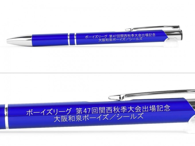 高級感のある金属製ボールペンでシンプルかつスタイリッシュなデザインが美しい名入れボールペン市場のオリジナル商品です。光沢のあるカラーにレーザー彫刻が美しく映え、記念品・販促品のアイテムとしてオススメの名入れペンです。レーザー彫刻により上品さが増し更に手帳、ポケット、ペンケースなどにもすっと収まる使い勝手の良いボールペンです。