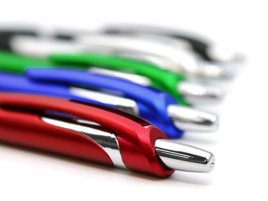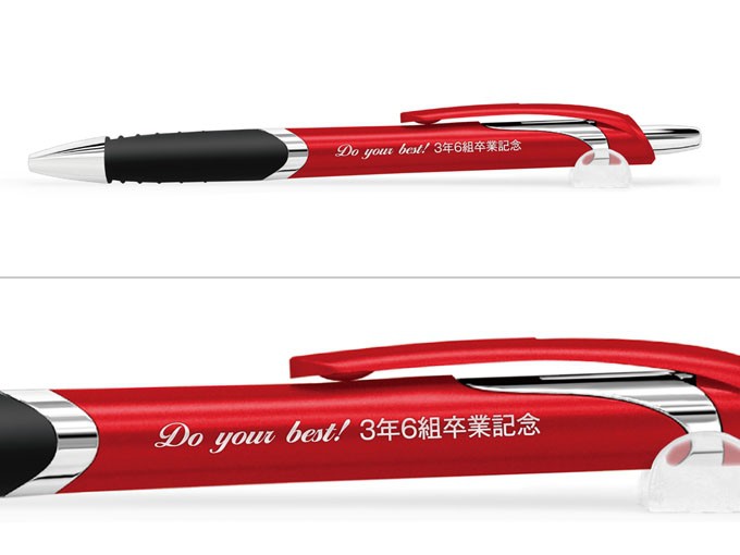 メッキのアクセントが効いたボディへマットに輝く特殊塗装を施したことで、さらに質感を向上させました。本体のカラーはシックな5色で、50本単位でお好きな色をお選びいただけます。印刷範囲の広いPAD印刷にも対応していますで、大きなロゴや2行での名入れも可能な商品です。