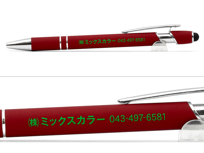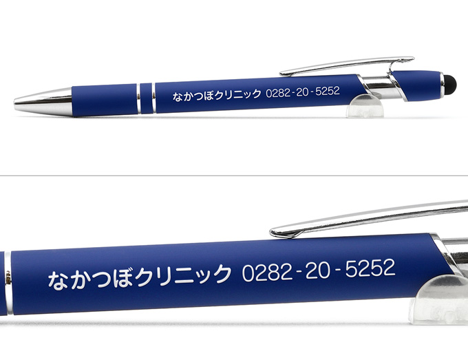 名入れボールペン人気No1のメタリックONEシリーズにタッチペン機能を搭載したスエード調加工のNEWバージョンが登場しました。スマートフォン・タブレットが普及して仕事にも利用する機会が増えていますので、タッチペン付きのボールペンが手元にあると便利だと好評を頂いてます。ボールペン機能については当サイトが研究を重ねて開発した独自の構造と、オリジナルの【書き味なめらかインク】を搭載し、書き味で有名な某国産ボールペンに引けをとらないなめらかな書き心地を実現しました。コストのかかる金属製ボールペンを、自社製作の低価格にてご案内しております。