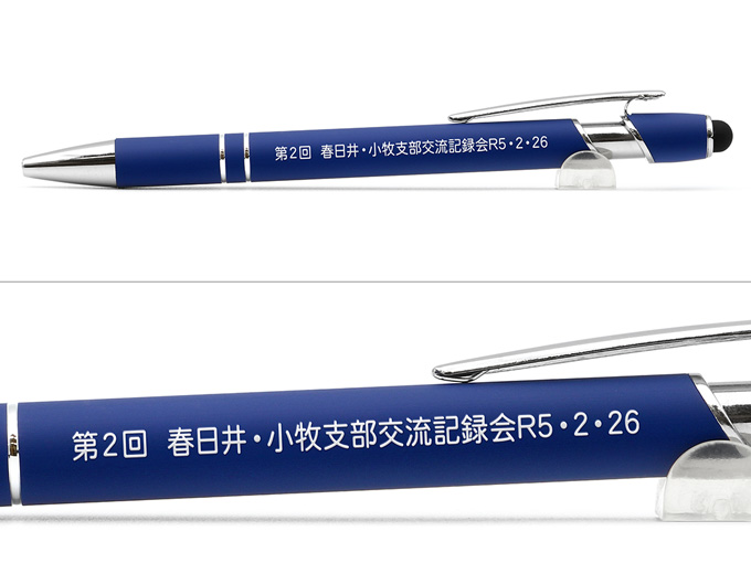 名入れボールペン人気No1のメタリックONEシリーズにタッチペン機能を搭載したスエード調加工のNEWバージョンが登場しました。スマートフォン・タブレットが普及して仕事にも利用する機会が増えていますので、タッチペン付きのボールペンが手元にあると便利だと好評を頂いてます。ボールペン機能については当サイトが研究を重ねて開発した独自の構造と、オリジナルの【書き味なめらかインク】を搭載し、書き味で有名な某国産ボールペンに引けをとらないなめらかな書き心地を実現しました。コストのかかる金属製ボールペンを、自社製作の低価格にてご案内しております。