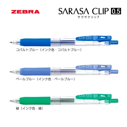 水性インクの軽い書き心地なのに、にじまない。ゼブラが誇る、ゲルインクボールペンNo.1のサラサクリップです。名前の通り、サラっと文字を書くことが出来るので、筆圧の弱い女性の方や、学生から高い人気を集めるボールペンです。0.5mmという絶妙な太さは手帳などに細かい字を書くのも、普段のメモやノートへ筆記する時も、どのような場面でもストレスなく文字を書くことが出来ます。実用性の高いサラサクリップはノベルティや販促品として多くの方に配る名入れボールペンに最適です。特に学生からの人気が高いので、オープンキャンパスや文化祭などのイベントには、サラサクリップの名入れボールペンがおすすめです。こちらの商品は本体色と同じ色のインクがそれぞれ搭載されております。