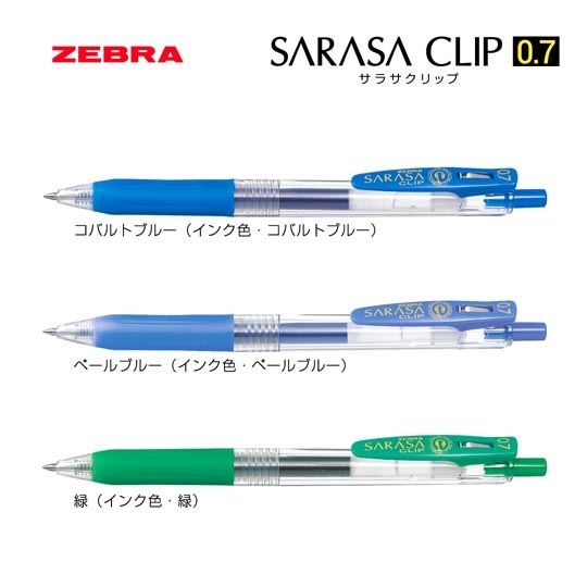 水性インクの軽い書き心地なのに、にじまない。ゼブラが誇る、ゲルインクボールペンNo.1のサラサクリップです。名前の通り、サラっと文字を書くことが出来るので、筆圧の弱い女性の方や、学生から高い人気を集めるボールペンです。芯の太さは0.7mmですので、書類やノート等への筆記やイラストを書く時などに適しています。実用性の高いサラサクリップはノベルティや販促品として多くの方に配る名入れボールペンに最適です。特に学生からの人気が高いので、オープンキャンパスや文化祭などのイベントには、サラサクリップの名入れボールペンがおすすめです。こちらの商品は本体色と同じ色のインクがそれぞれ搭載されております。