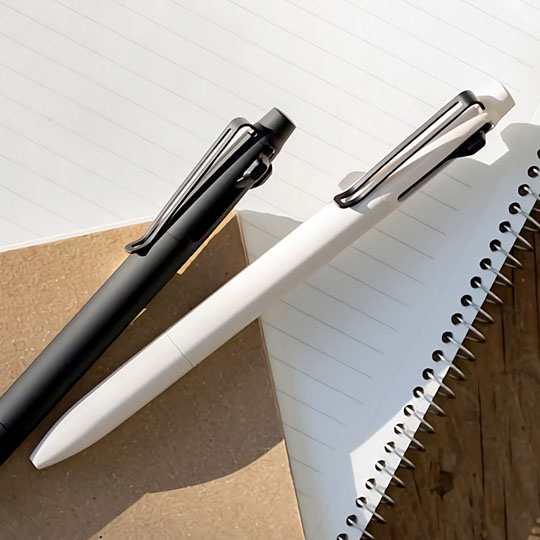 新開発のノック機構を搭載し、片手での操作性に優れたジェットストリームプライム3色 0.5mm(NEWバージョン)が登場です。超・低摩擦ジェットストリームインク搭載で筆記荷重、速度に関わらず低い筆記抵抗でなめらかに書けます。更に描線の速乾性にすぐれており、濃くはっきりとした文字が表現できます。新形状のクリップを採用し、ミニマルなスタイリングを表現しながら、耐久力も向上しております。また、インク色表示はノック棒上部にさりげなく配置することで軸全体をモノトーンにまとめたシンプルで上質なデザインとなっております。デスクワークやテレワーク等どのシーンにもなじむボールペンです。本体色は老若男女問わずお使い頂けるブラックとベージュの2色からお選び頂けます。