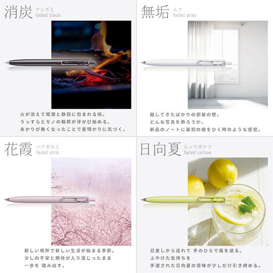 このたび新開発した新技術ビーズパック顔料を使用した新インクを搭載したユニボールワン Fシリーズ 0.38mmが登場。新インクは一層色濃い文字が書け、 記憶に残りやすい効果が実証されたゲルインクボールペンです。一般的なゲルインクと異なり、色材の紙繊維への浸透を極力抑える、新しい顔料を使用しており、従来の色材を粒子中に閉じ込めた独自開発のビーズパック顔料です。 インクの色材となる顔料を粒子中に閉じ込め、粒子のサイズを大きくすることで、色材の紙面への浸透を極力抑えます。それにより、紙面上の色材が本来の色を発色し、黒はより濃く、カラーはより鮮やかに発色することが出来ます。リフィルを保持する先軸に寸法精度を高めた金属製のペン先を採用しており、低重心で安定した、よりなめらかな書き味を実現した「スタビライザー機構」搭載しています。軽い力で安定してスラスラ書くことができるため勉強やメモ書きのみならず、日記などにも適しています。また快適な書き心地だけでなく、ワンポイントの金属製のペン先がデザインのシャープさを際立て、より洗練された上質なボールペンとなっております。