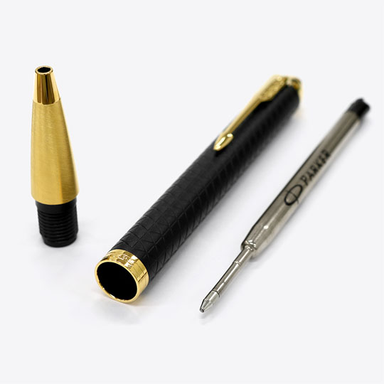 スマートでモダンなデザインと洗練された気品、確かな機能を兼ね備えた人気の「パーカー・IM」から現代性と伝統が融合されたデザインが人気の「パーカー・IM プレミアム」が登場。ペン先・クリップ・リング部分をゴールドプレートで仕上げ、繊細でスタイリッシュなデザインは持つ人の心躍らせるボールペンです。特別な日の記念品や大切な人へのギフトとして幅広く愛されている商品に贈る方のお名前やイニシャルを入れてお届け致します。本体はウォームグレイGT・ブラックGTの2種類からお選びいただけます。
