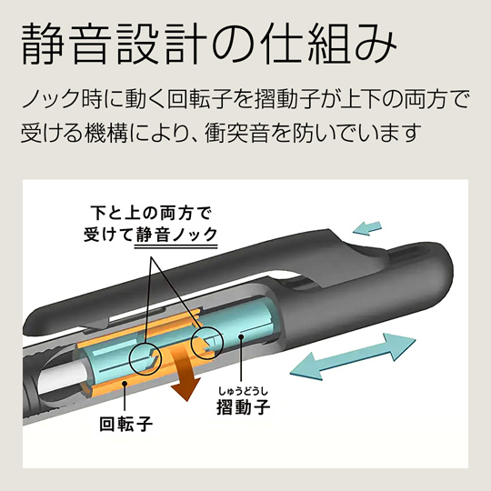ノック作動時に手に感じる衝撃も和らげています。
