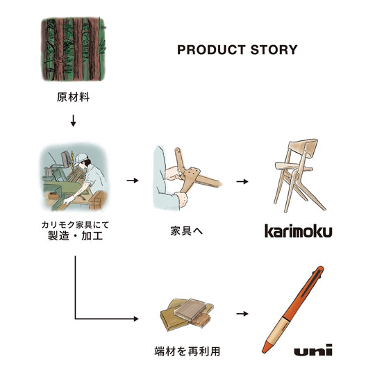 書きやすさ、使いやすさで人気のジェットストリーム4&1 多機能ペンから木製家具メーカー「カリモク家具」とコラボレーションした「ジェットストリーム4&1 0.5mm JETSTREM×Karimoku」が新登場致しました。家具製造時に生じる端材をグリップに再利用した個性的で魅力のあるボールペンとなっております。